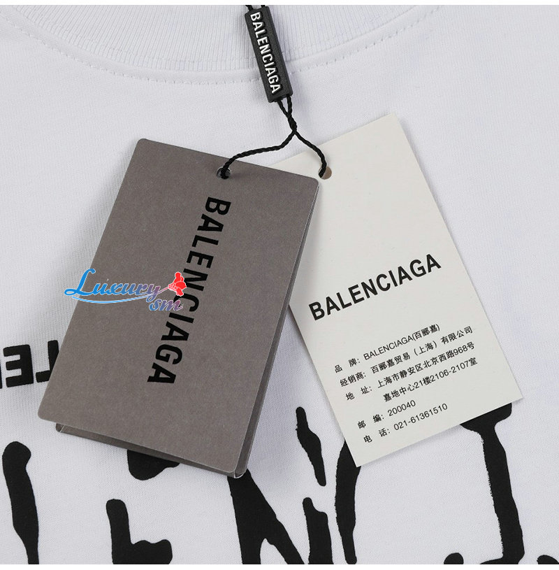 BALENCIAGA-06227 발렌시아가 화이트 프린트 장식 티셔츠 남여공용