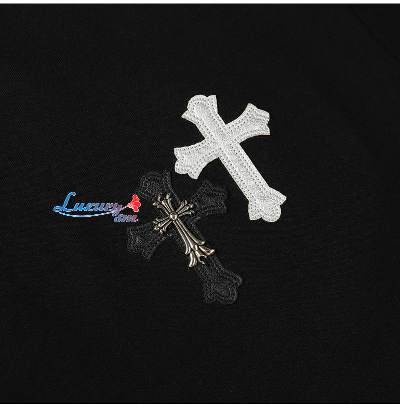 CHROMEHEARTS-062211 크롬하츠 블랙 아플리케 장식 티셔츠 남여공용