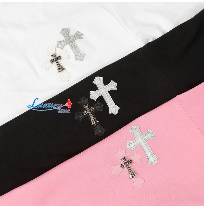 CHROMEHEARTS-062212 크롬하츠 핑크 아플리케 장식 티셔츠 남여공용