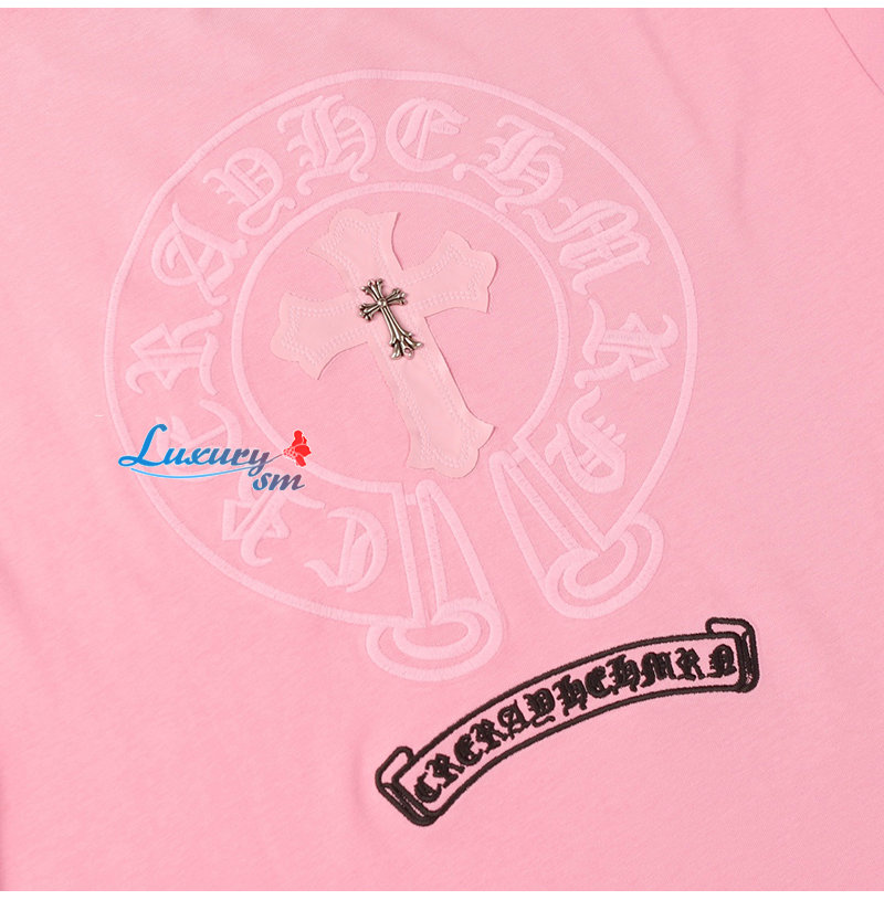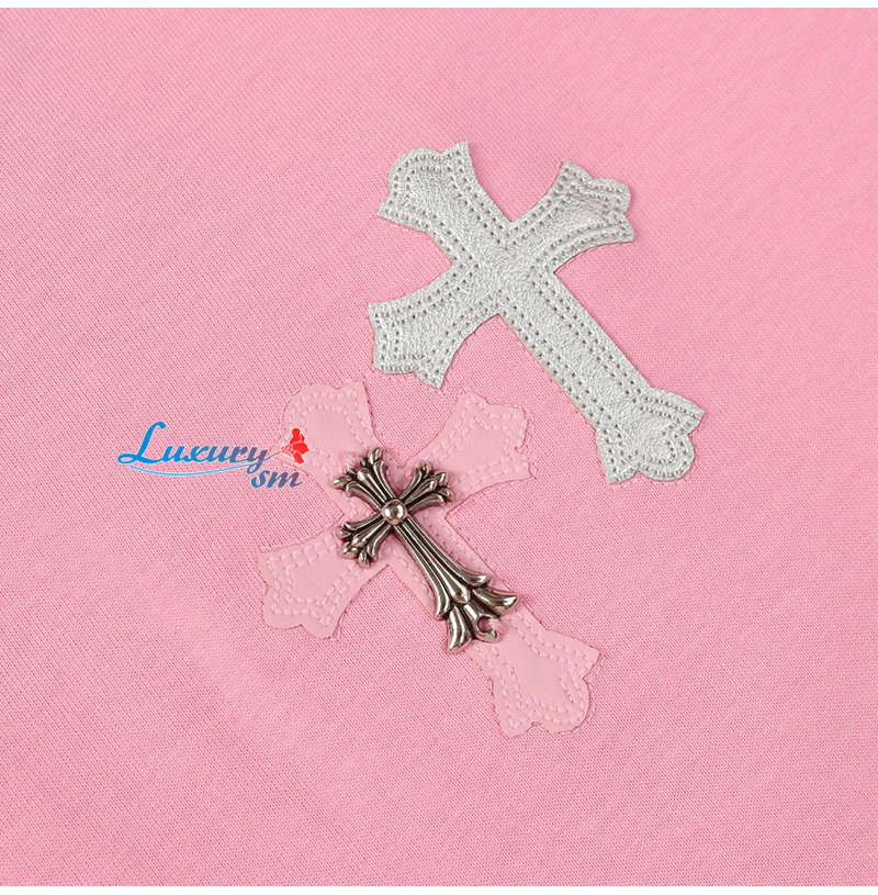 CHROMEHEARTS-062212 크롬하츠 핑크 아플리케 장식 티셔츠 남여공용