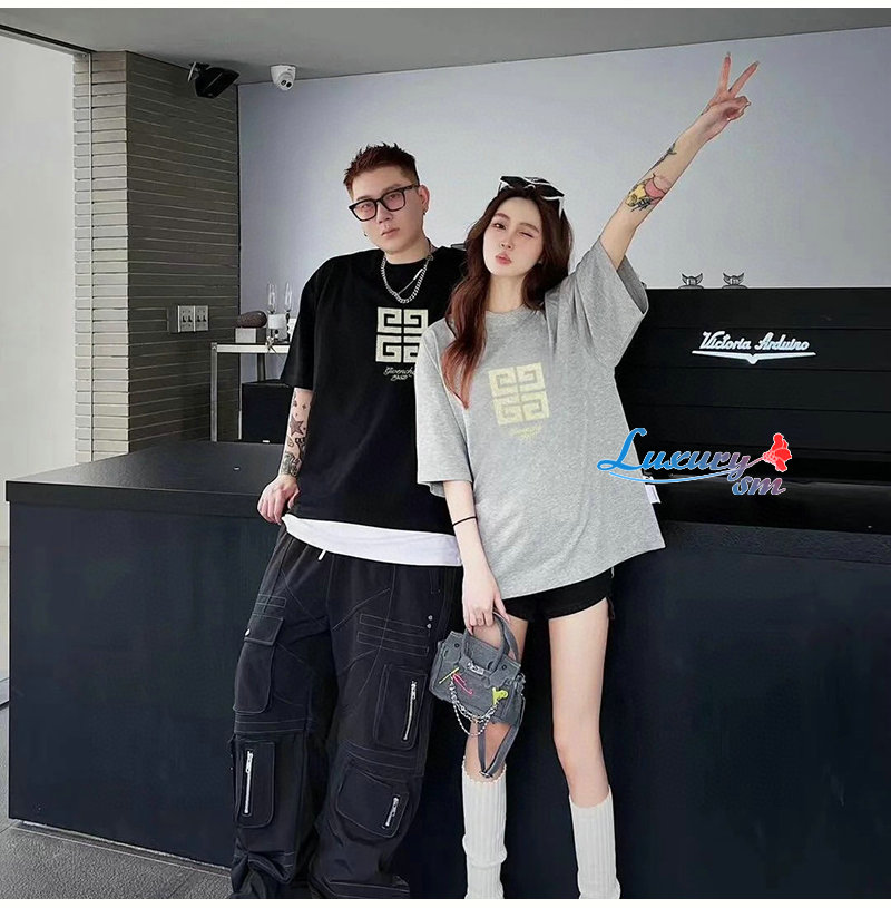 GIVENCHY-07072 지방시 그레이 4G 아플리케 장식 티셔츠 남여공용