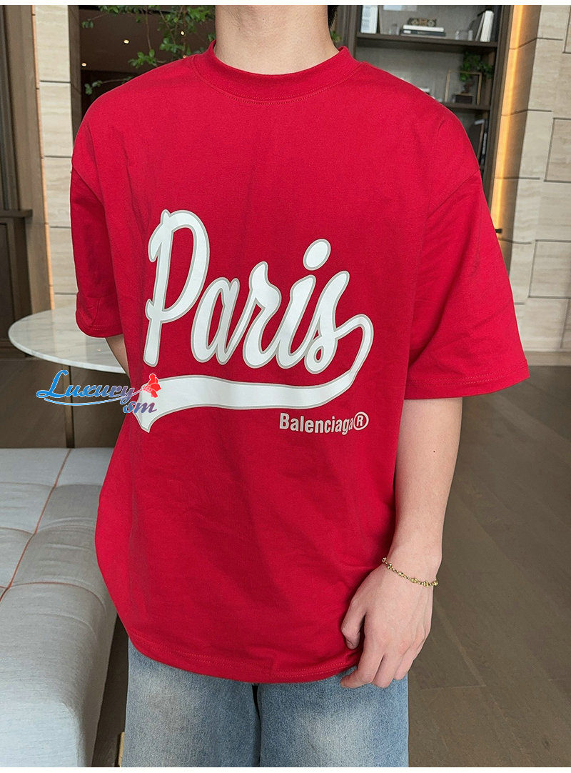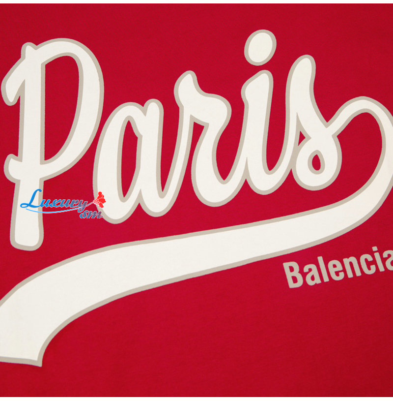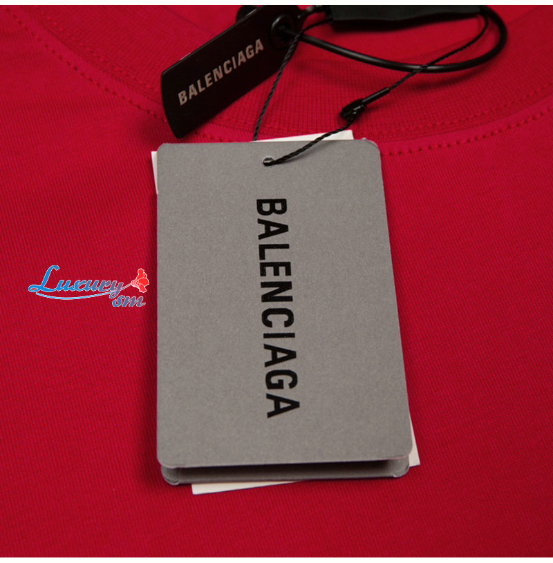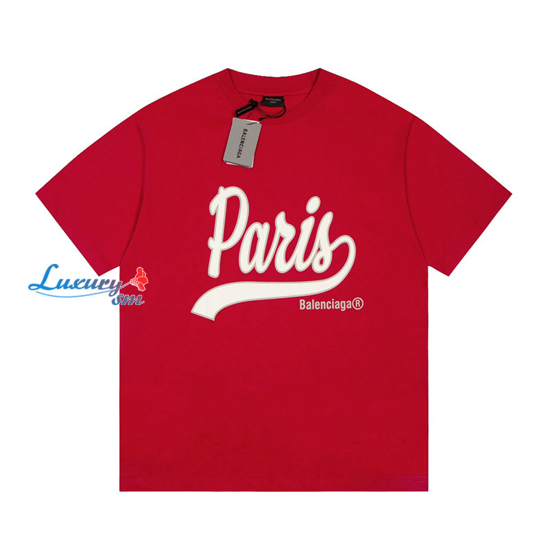 BALENCIAGA-07182 발렌시아가 레드 프린트 장식 티셔츠 남여공용