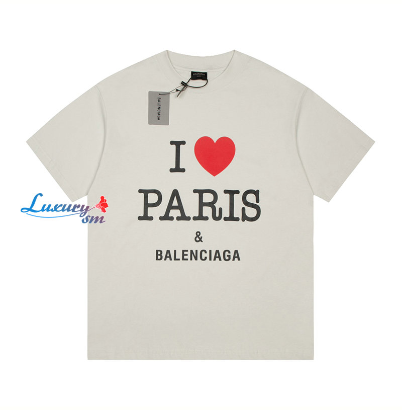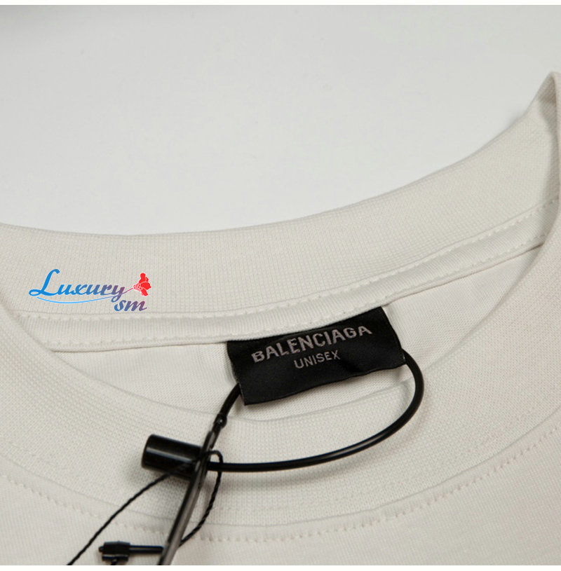 BALENCIAGA-07187 발렌시아가 화이트 프린트 장식 티셔츠 남여공용