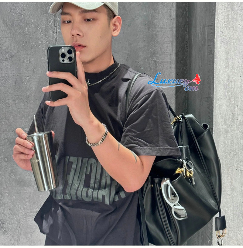BALENCIAGA-07242 발렌시아가 블랙 프린트 장식 티셔츠 남여공용