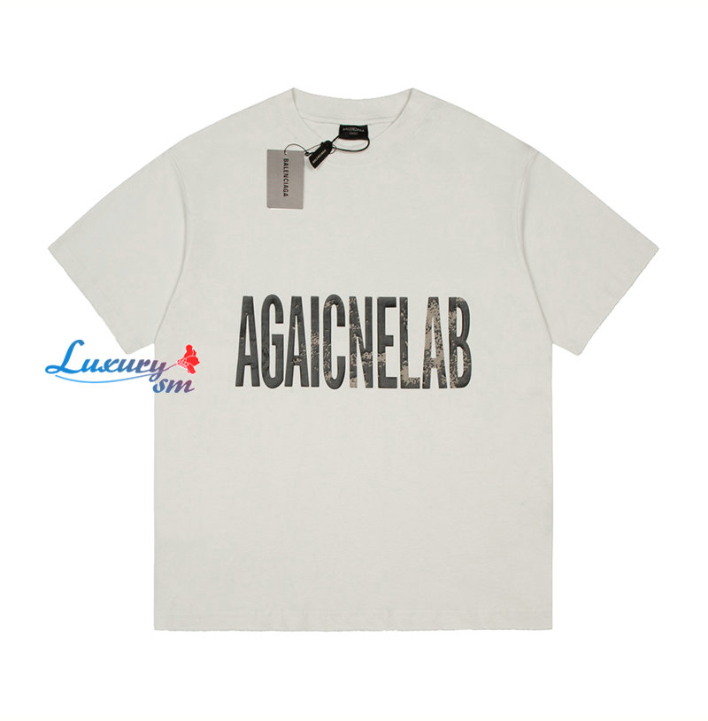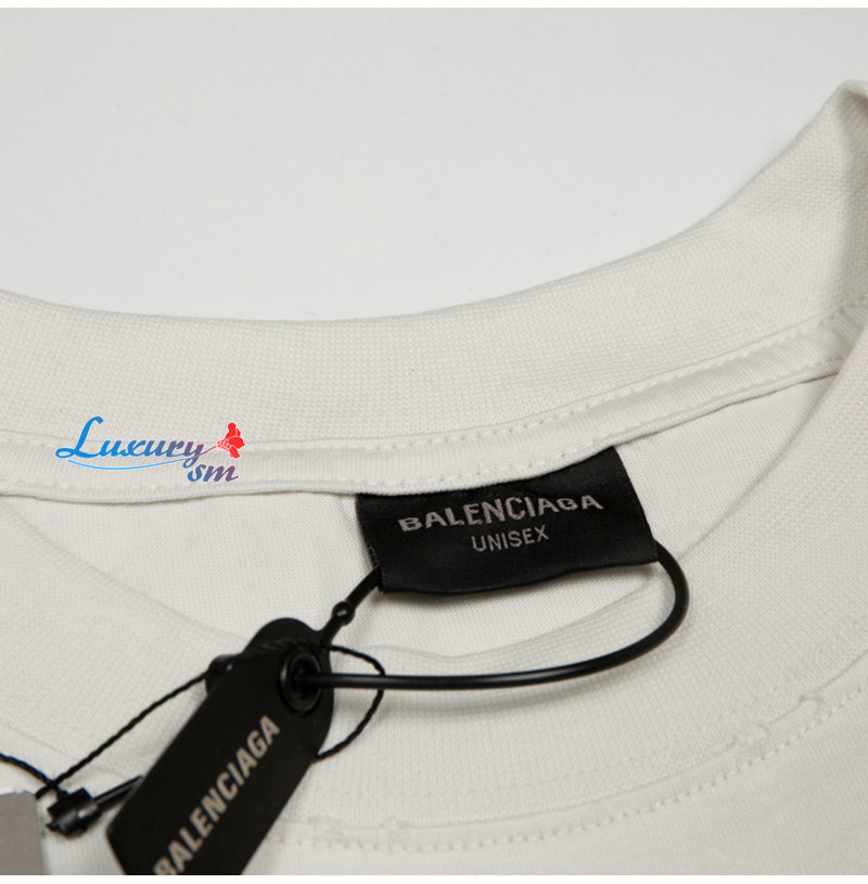 BALENCIAGA-07243 발렌시아가 화이트 프린트 장식 티셔츠 남여공용