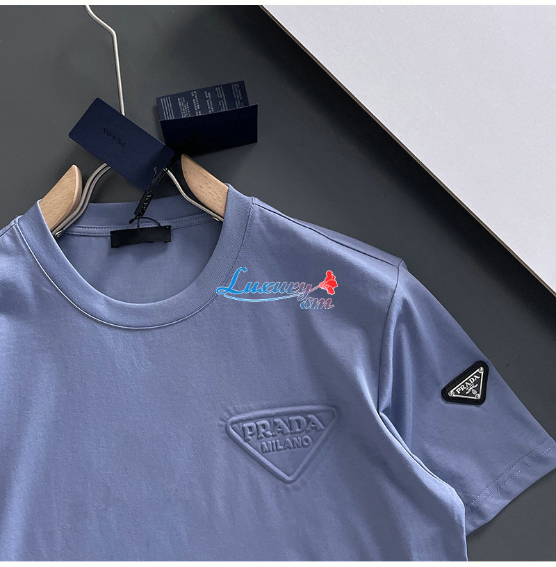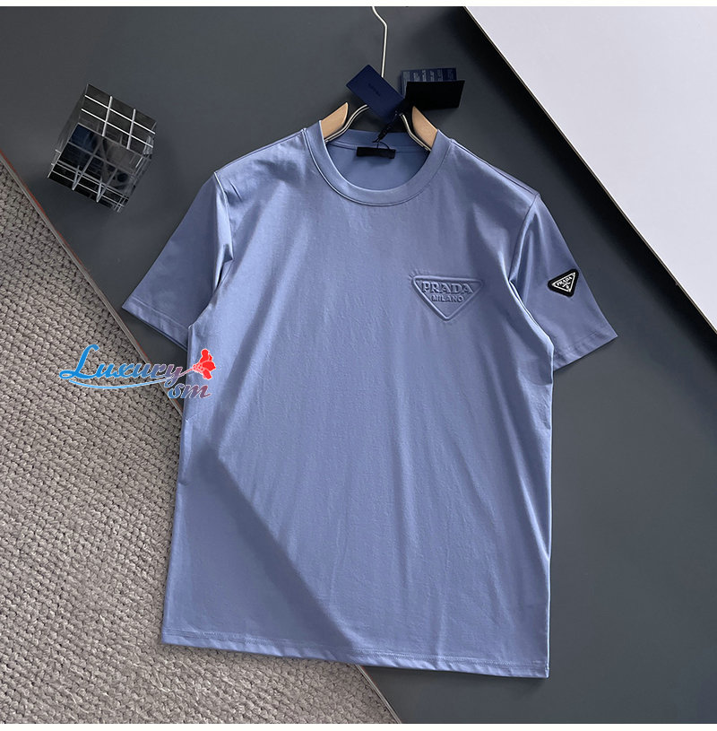 PRADA-07213 프라다 블루 트라이앵글 로고 티셔츠 남성용