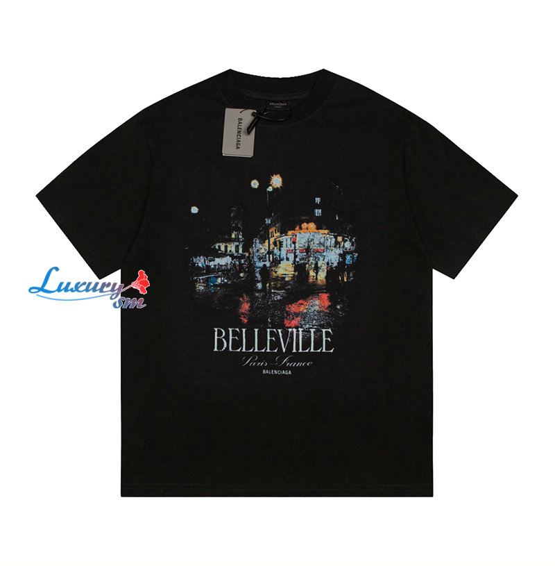 BALENCIAGA-07302 발렌시아가 블랙 프린트 장식 티셔츠 남여공용