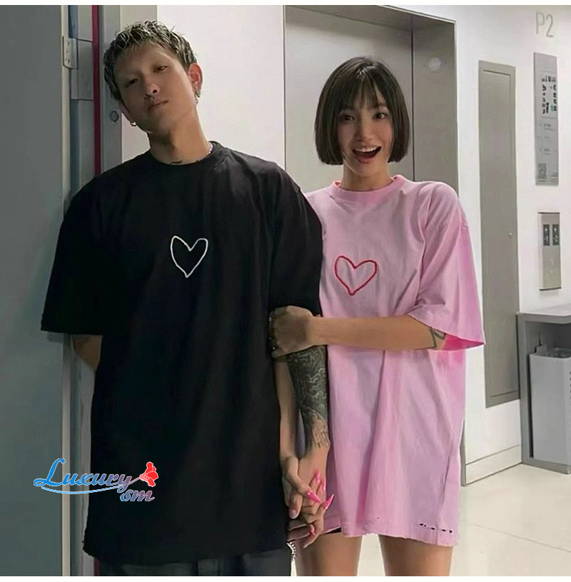 BALENCIAGA-07304 발렌시아가 핑크 프린트 장식 티셔츠 남여공용