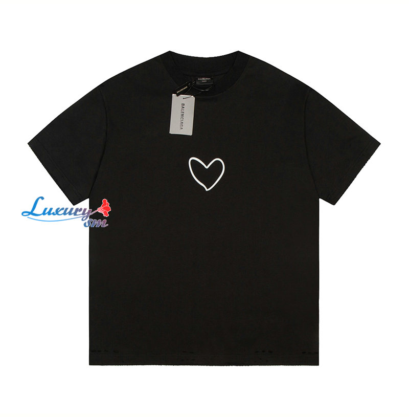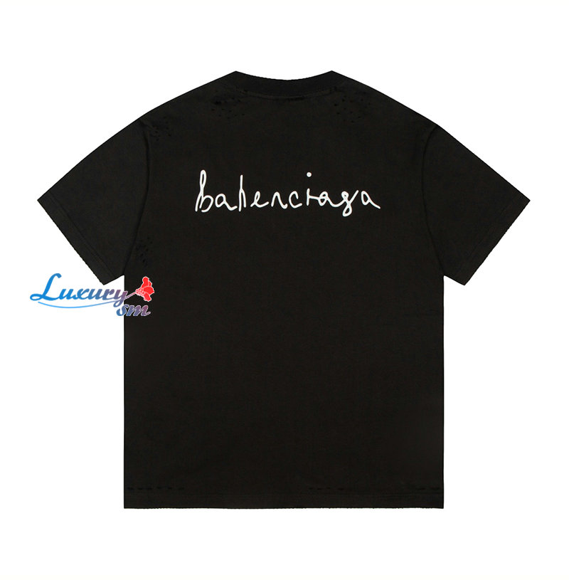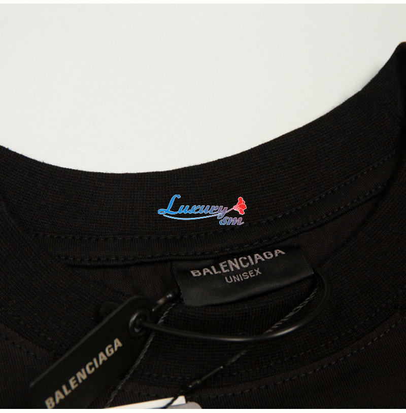 BALENCIAGA-07303 발렌시아가 블랙 프린트 장식 티셔츠 남여공용