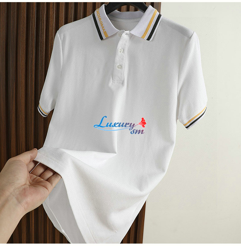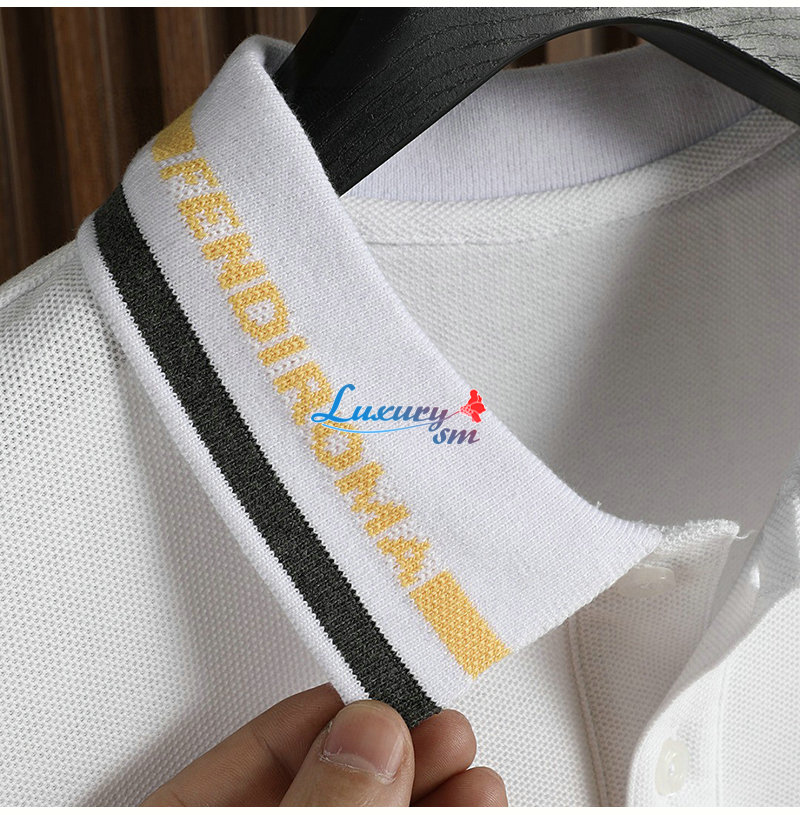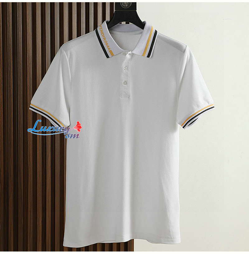 FENDI-08073 펜디 화이트 스트라이프 장식 폴로 티셔츠 남성용