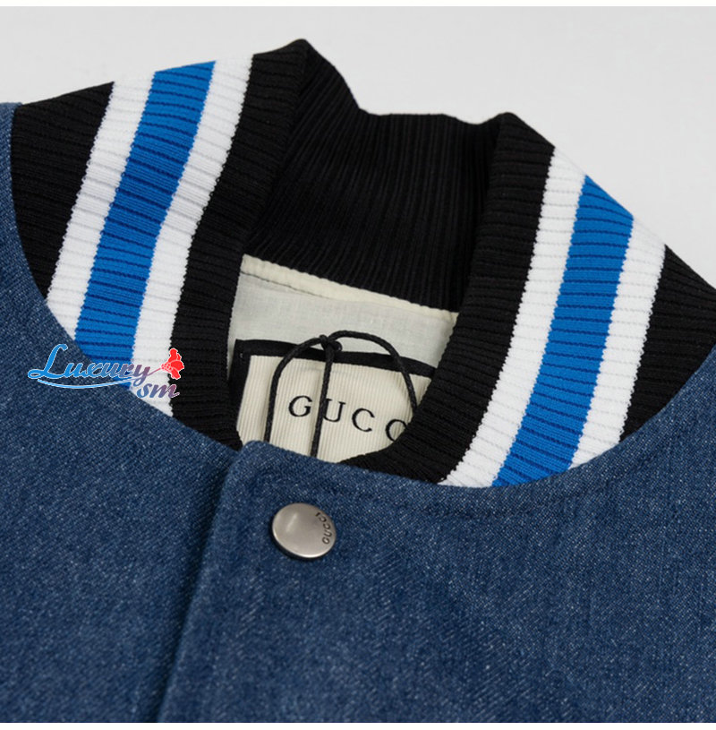 GUCCI-08211 구찌 화이트/블루 아플리케 장식 베이스볼 재킷 남여공용