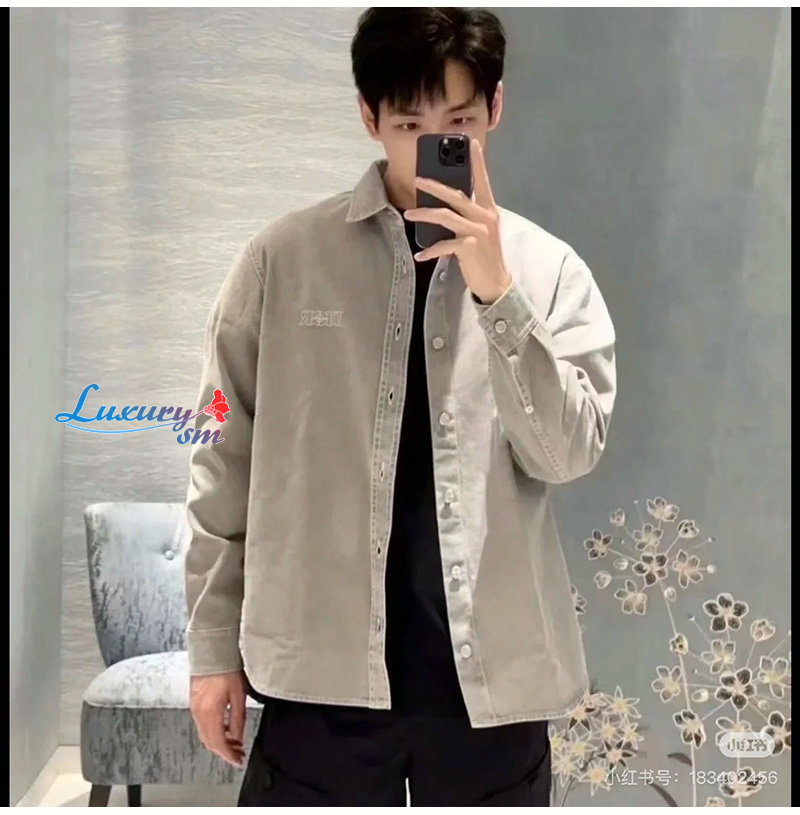 DIOR-08213 디올 그레이 아플리케 장식 데님 셔츠 남여공용