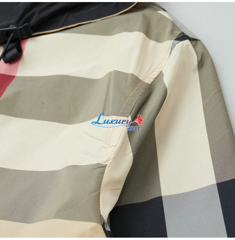 BURBERRY-08305 버버리 베이지 체크 무늬 바람막이 후드 재킷 남성용