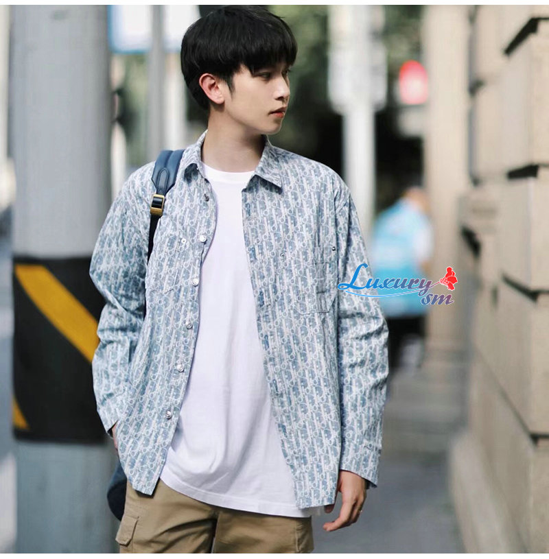 DIOR-08305 디올 라이트 블루 Dior Oblique 데님 셔츠 남여공용