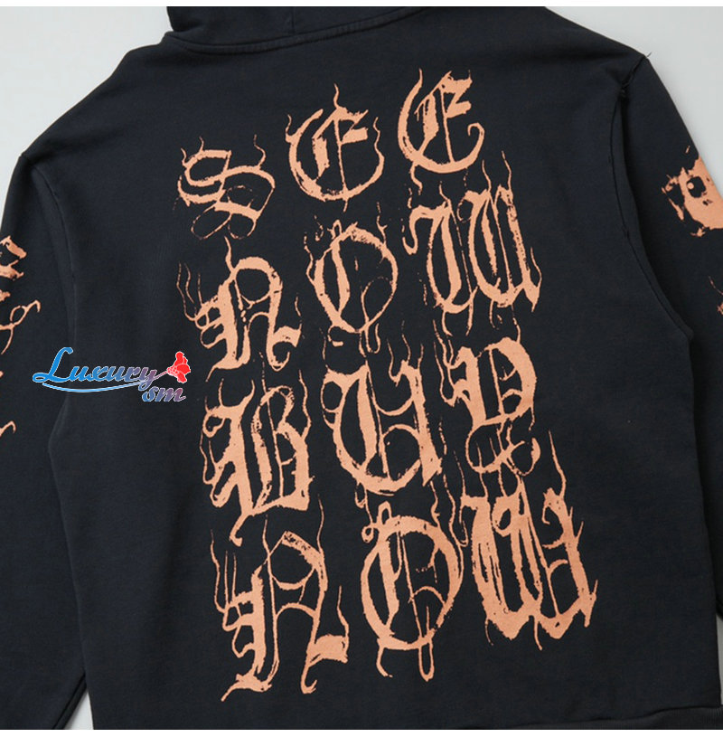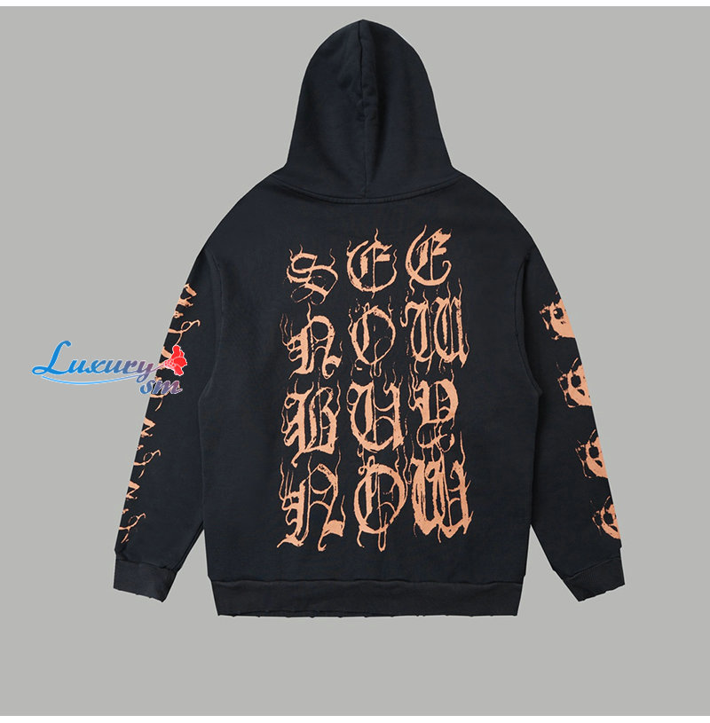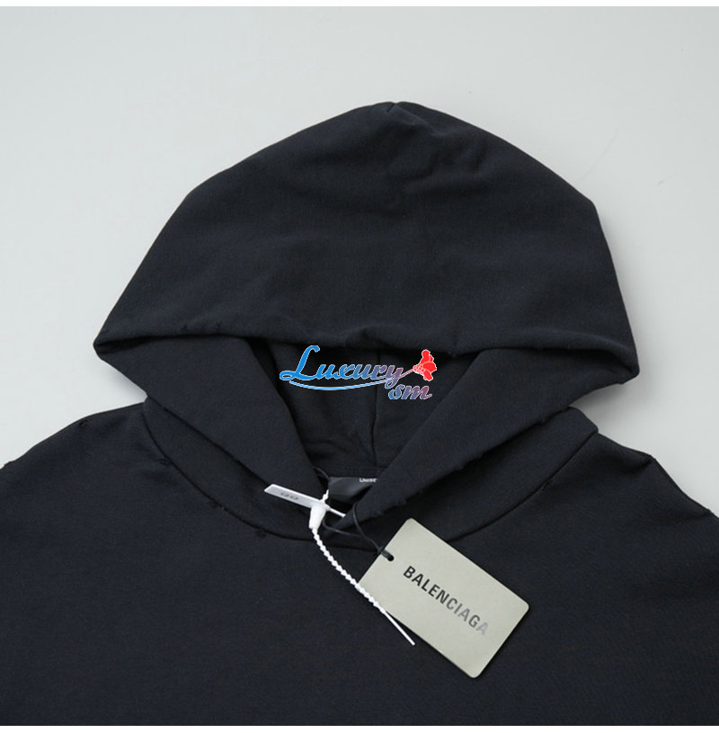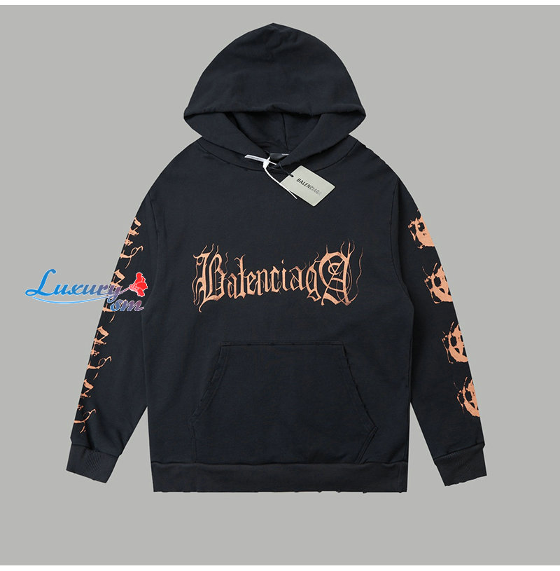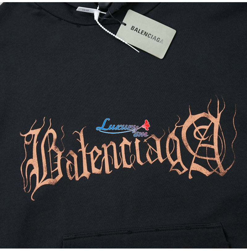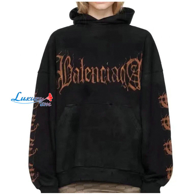 BALENCIAGA-08305 발렌시아가 블랙 프린트 장식 후드 티셔츠 남여공용