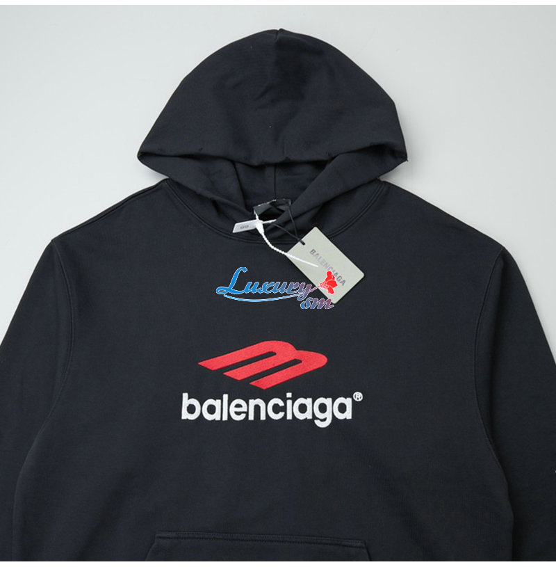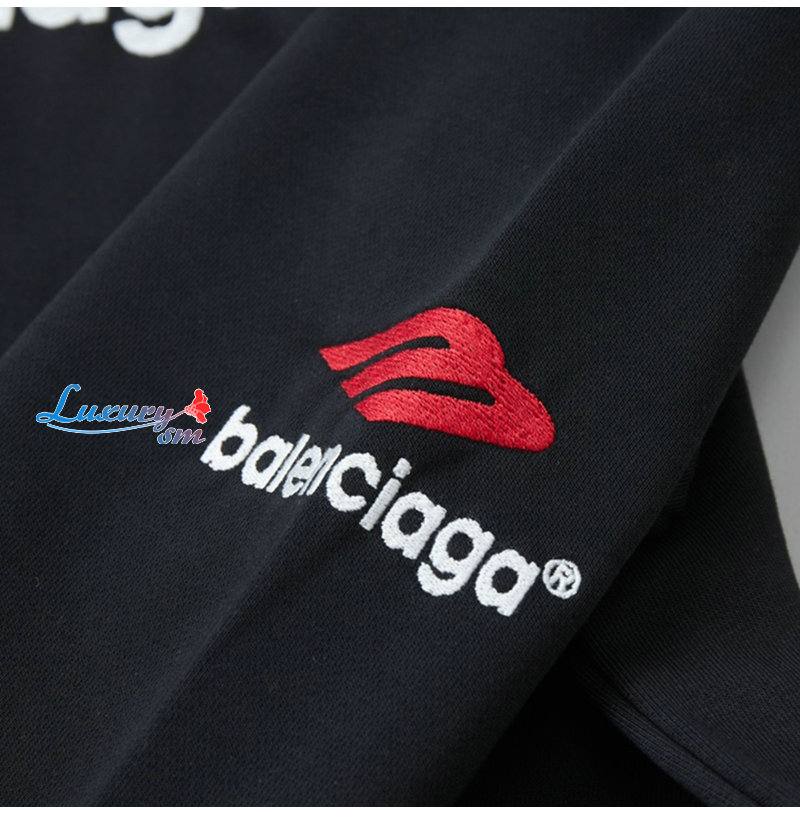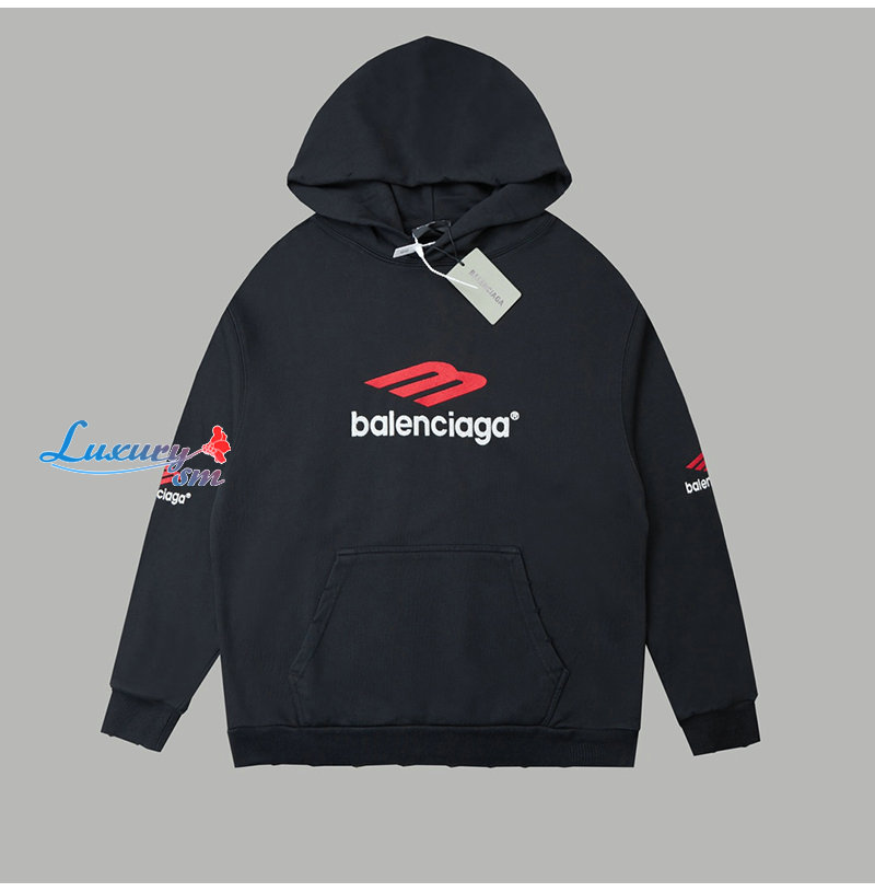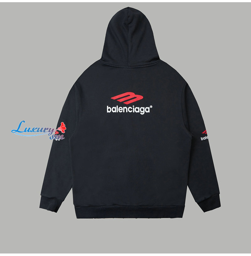 BALENCIAGA-08306 발렌시아가 블랙 아플리케 장식 후드 티셔츠 남여공용