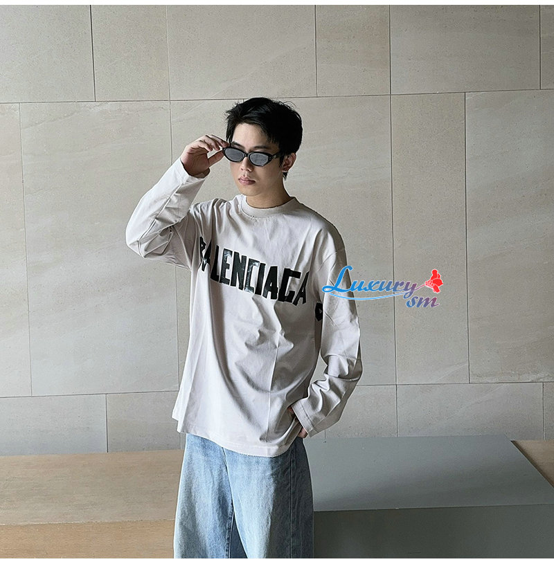 BALENCIAGA-09021 발렌시아가 그레이 코튼 빈티지 긴팔 티셔츠 남여공용