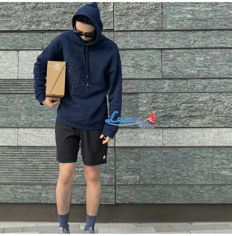 LOEWE-090913 로에베 네이비 로고 아플리케 장식 후드 티셔츠 남여공용