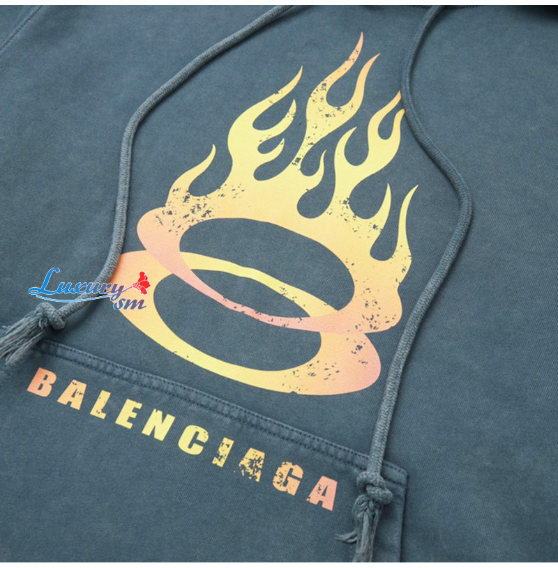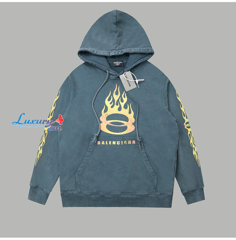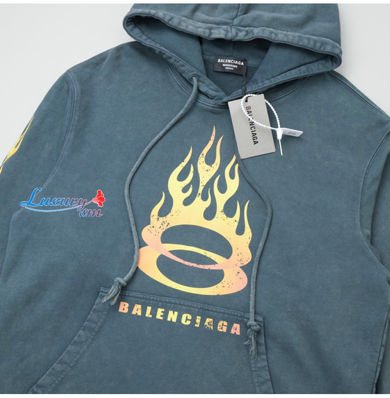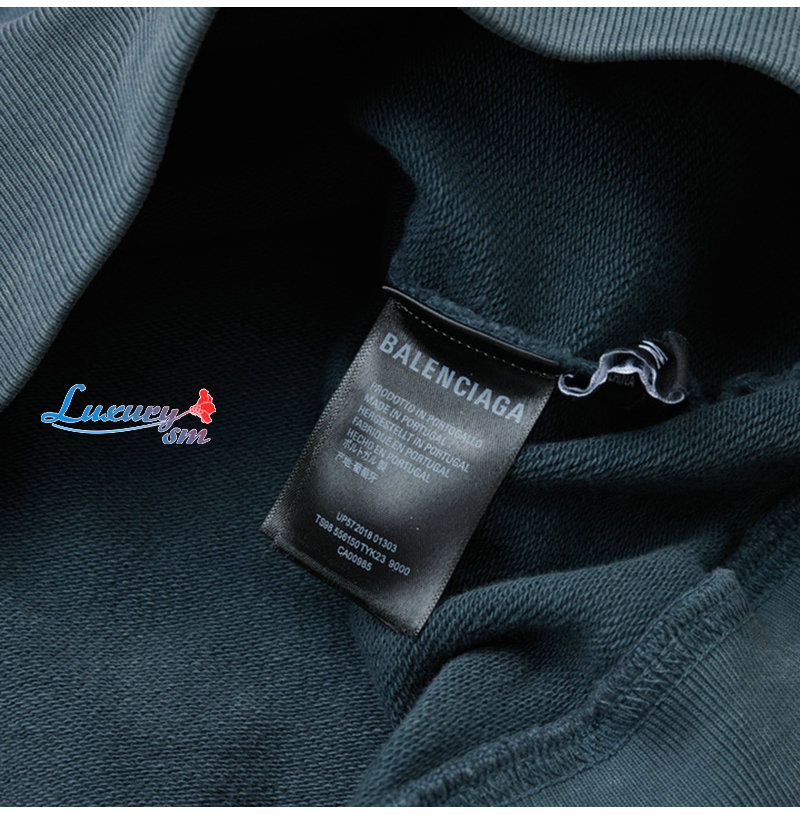 BALENCIAGA-090914 발렌시아가 블루 프린트 장식 워싱 후드 티셔츠 남성용