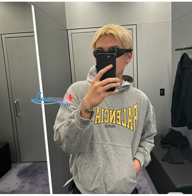 BALENCIAGA-092015 발렌시아가 그레이 프린트 장식 후드 티셔츠 남여공용