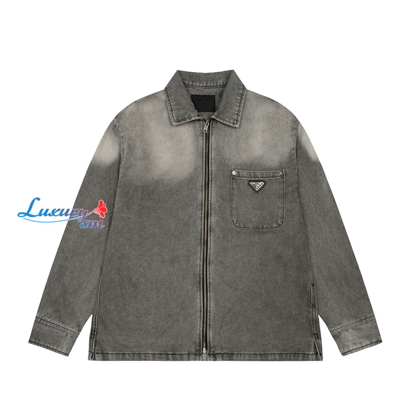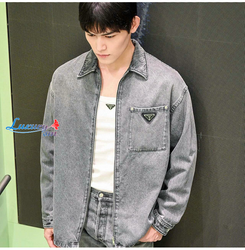 PRADA-09264 프라다 그레이 트라이앵글 로고 데님 재킷 남여공용