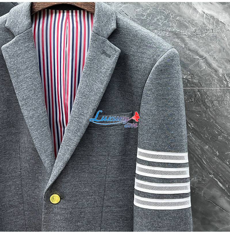 THOM BROWNE-092912 톰 브라운 라이트 그레이 스트라이프 장식 투 버튼 수트 남성용 가격 : 360,000원
