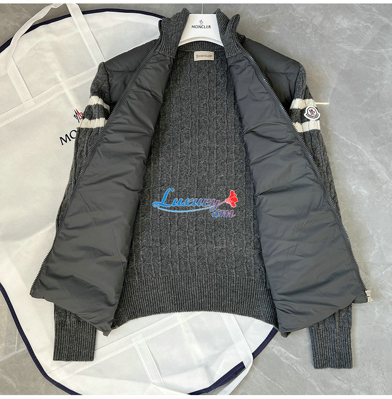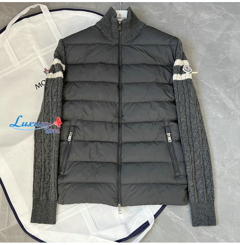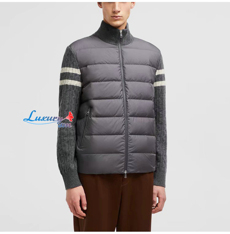 MONCLER-10193 몽클레어 그레이 스트라이프 장식 퀄팅 재킷 남성용
