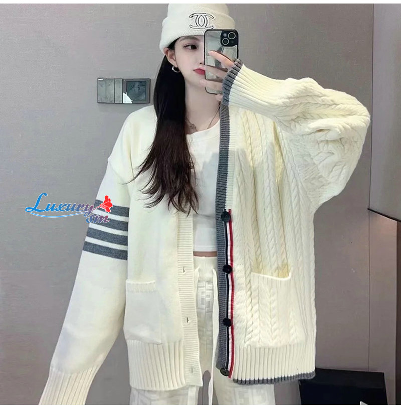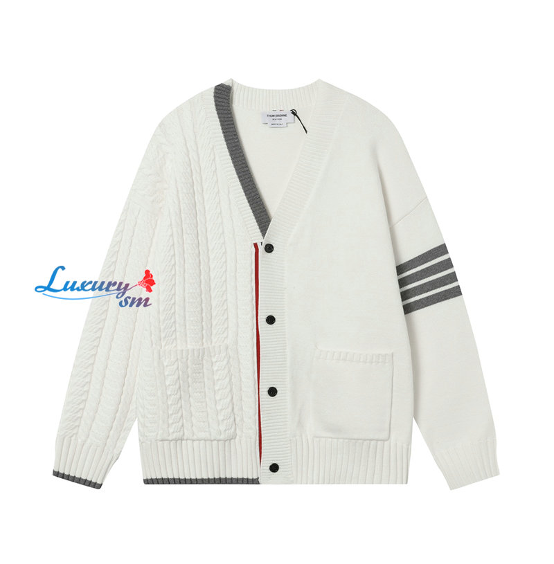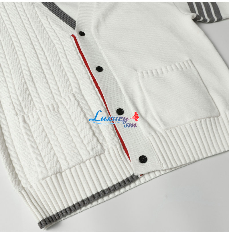 THOM BROWNE-110111 톰 브라운 화이트 스트라이프 장식 가디건 남여공용