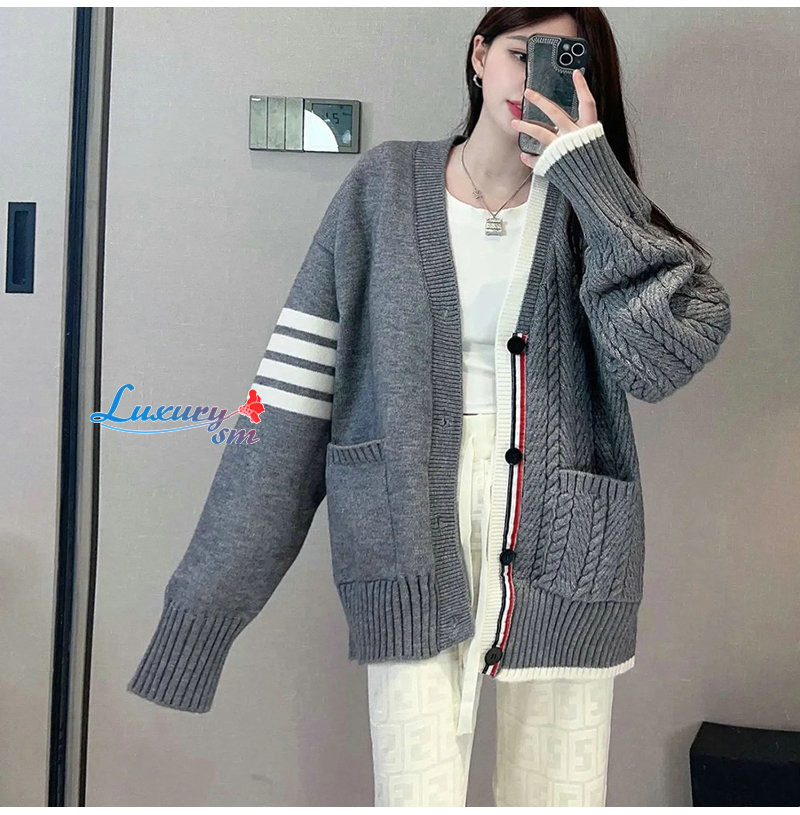 THOM BROWNE-110112 톰 브라운 그레이 스트라이프 장식 가디건 남여공용