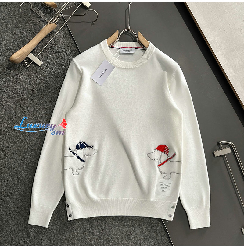 THOM BROWNE-11169 톰 브라운 화이트 아플리케 장식 스웨터 남성용
