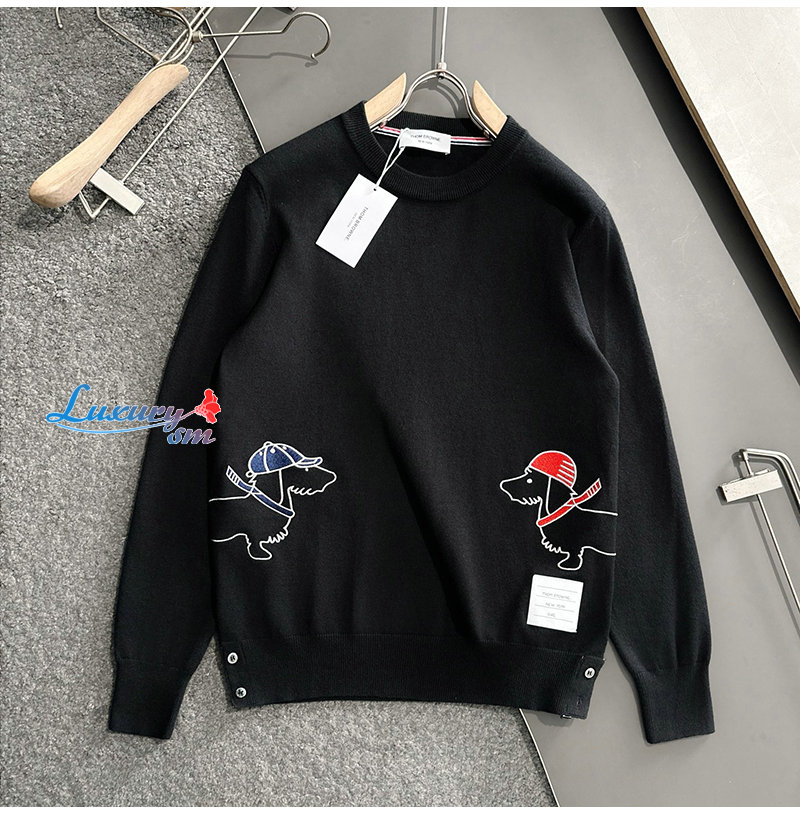 THOM BROWNE-111610 톰 브라운 블랙 아플리케 장식 스웨터 남성용