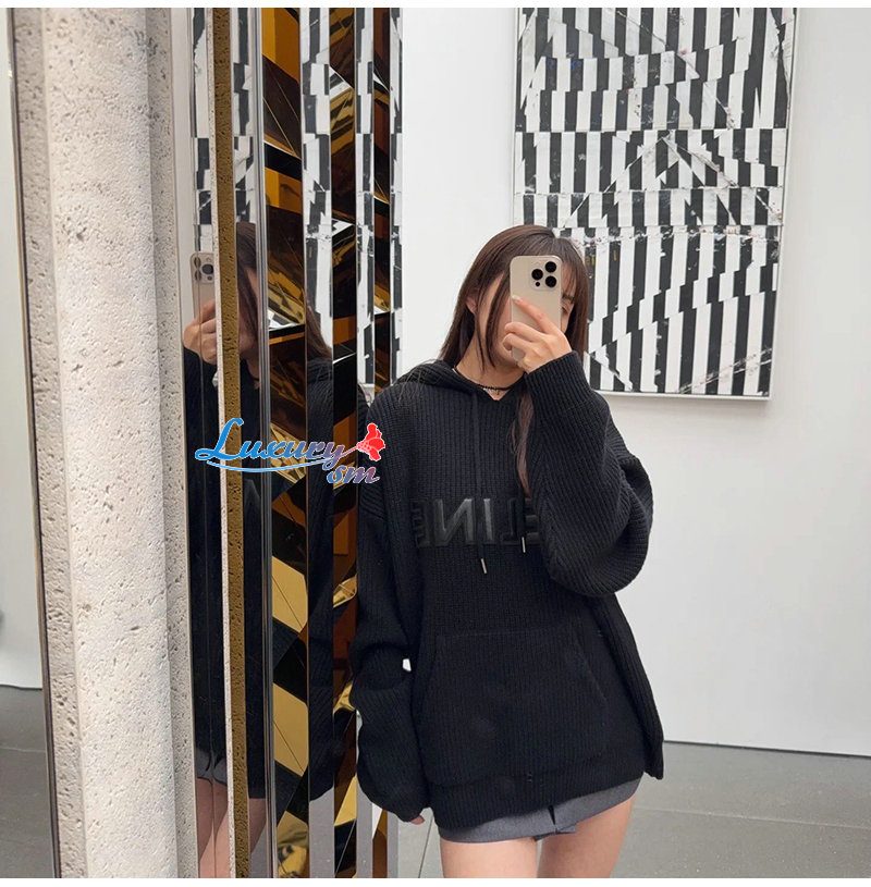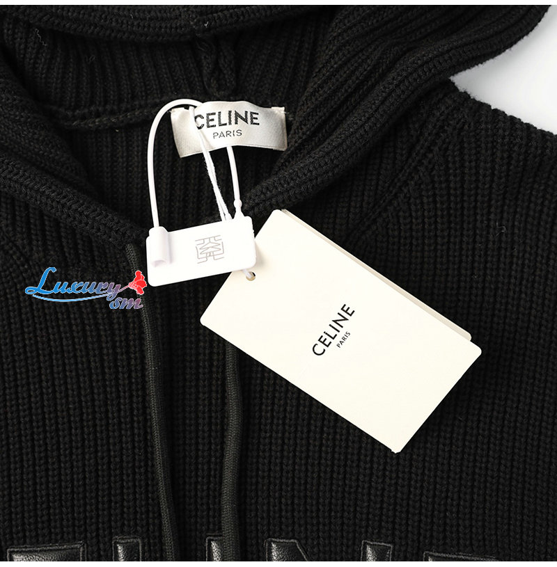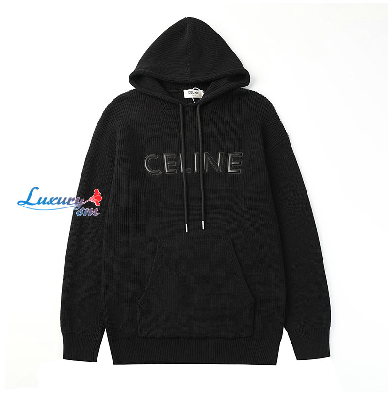 CELINE-12179 셀린느 블랙 아플리케 장식 후드 스웨터 남여공용