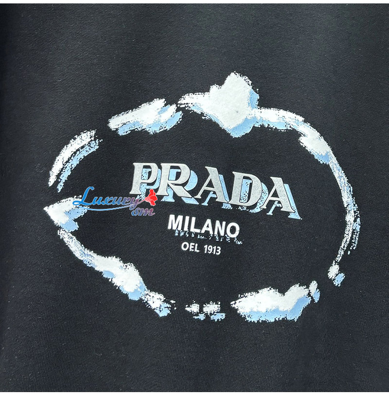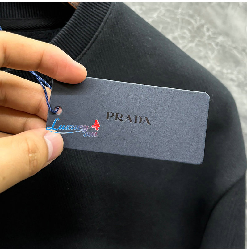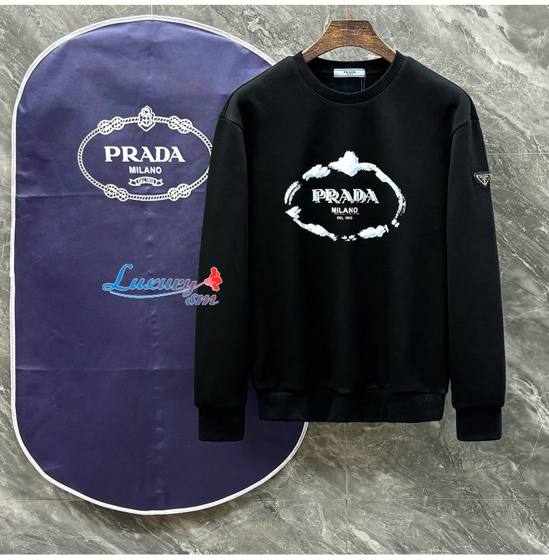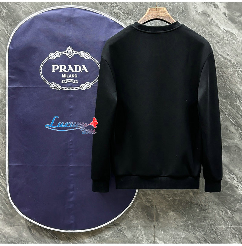 PRADA-12218 프라다 블랙 프린트 장식 기모 스웨트셔츠 남여공용
