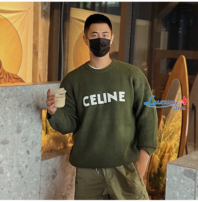 CELINE-122411 셀린느 카키 아플리케 장식 스웨터 남여공용