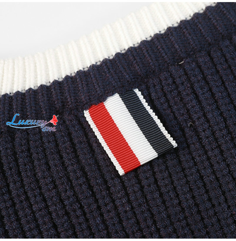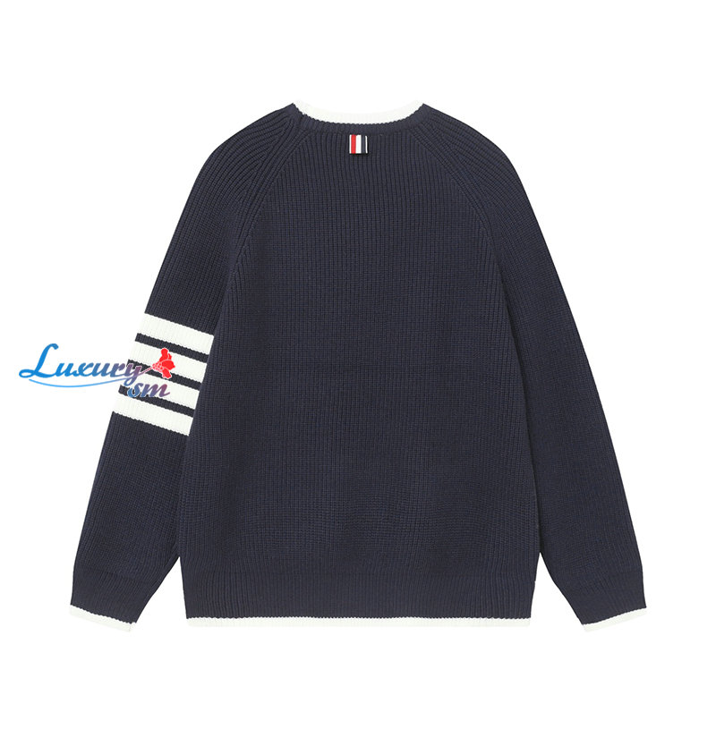 THOM BROWNE-122415 톰 브라운 네이비 스트라이프 장식 스웨터 남여공용