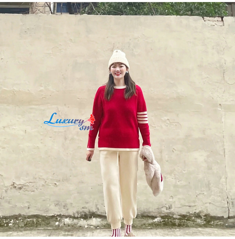 THOM BROWNE-122416 톰 브라운 레드 스트라이프 장식 스웨터 남여공용