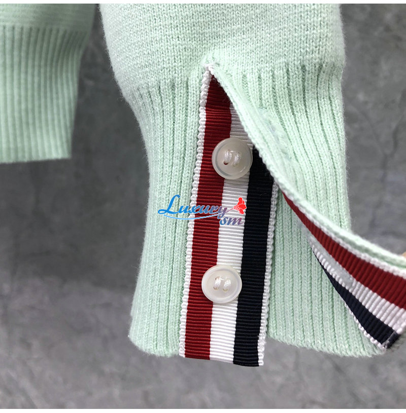 THOM BROWNE-010813 톰 브라운 민트 그린 스트라이프 장식 스웨터 남여공용