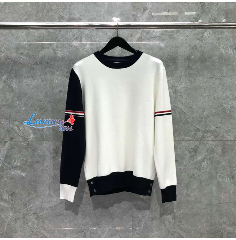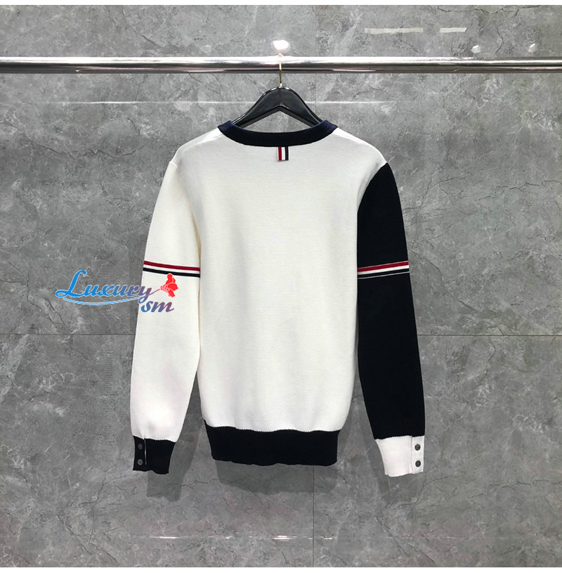 THOM BROWNE-010814 톰 브라운 화이트 스트라이프 장식 스웨터 남여공용