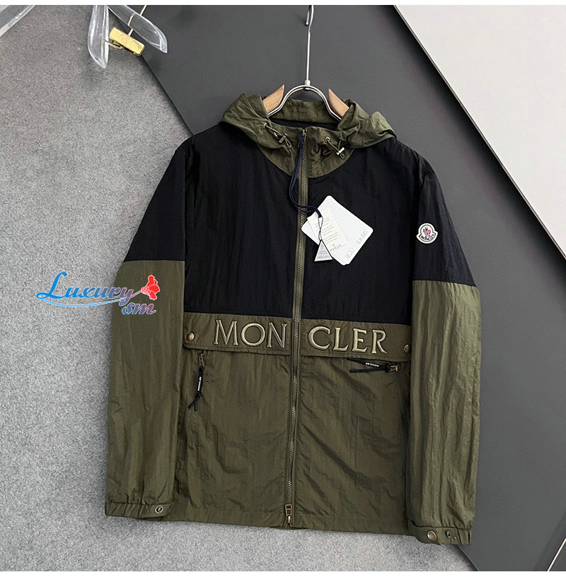 MONCLER-02198 몽클레어 카키/블랙 아플리케 장식 바람막이 후드 재킷 남성용