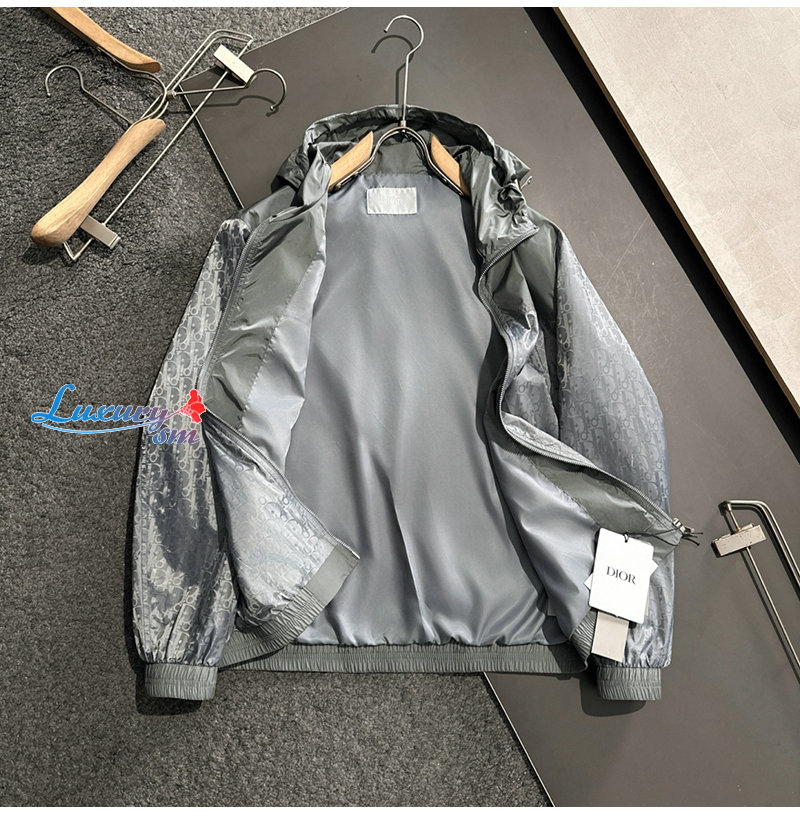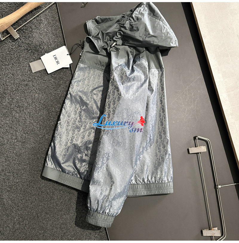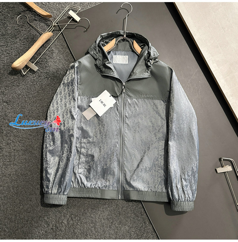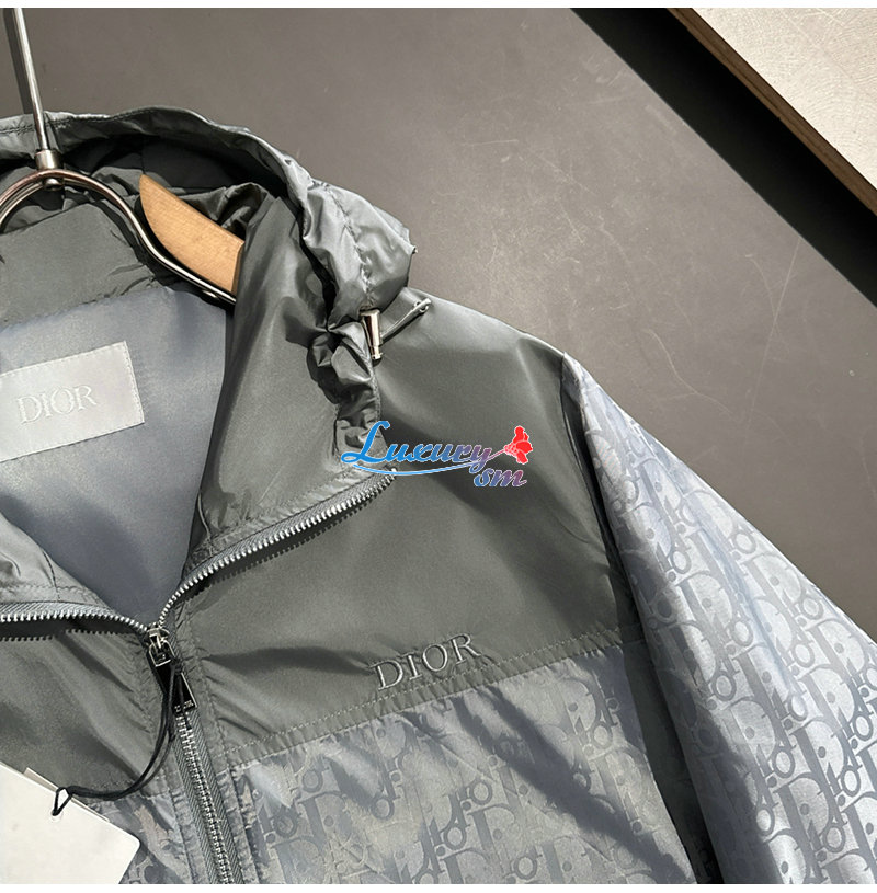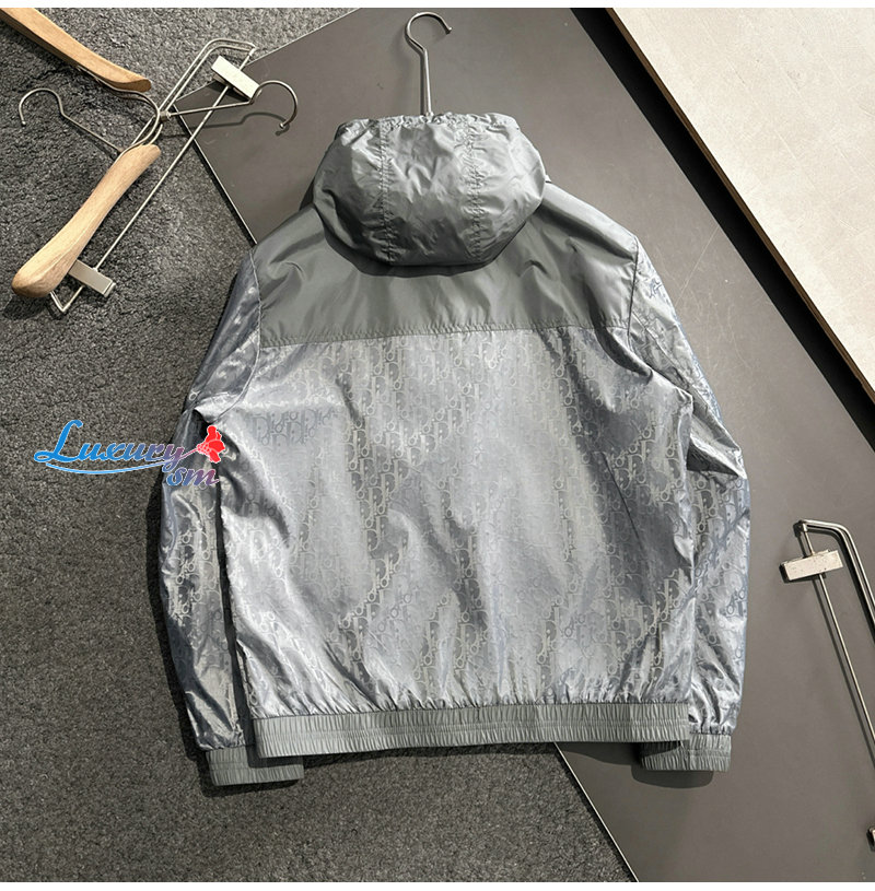 DIOR-02223 디올 그레이 Dior Oblique 바람막이 후드 재킷 남성용