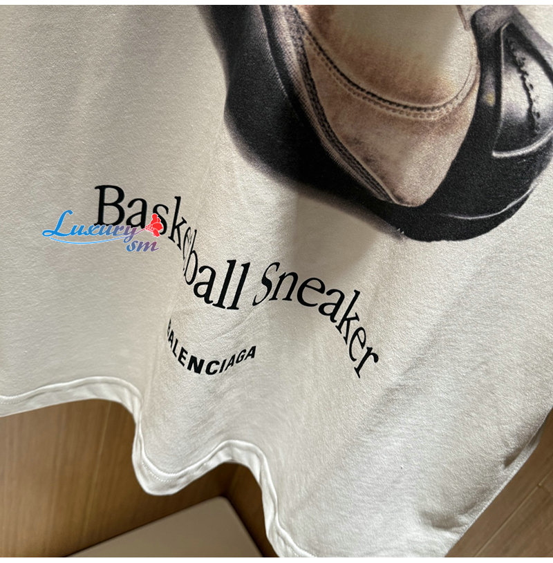 BALENCIAGA-03187 발렌시아가 화이트 프린트 장식 티셔츠 남여공용
