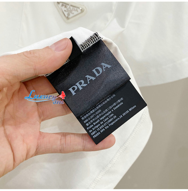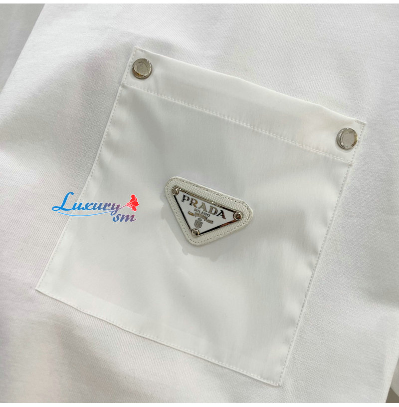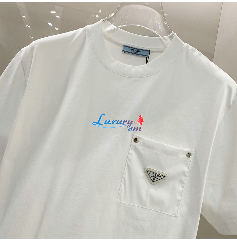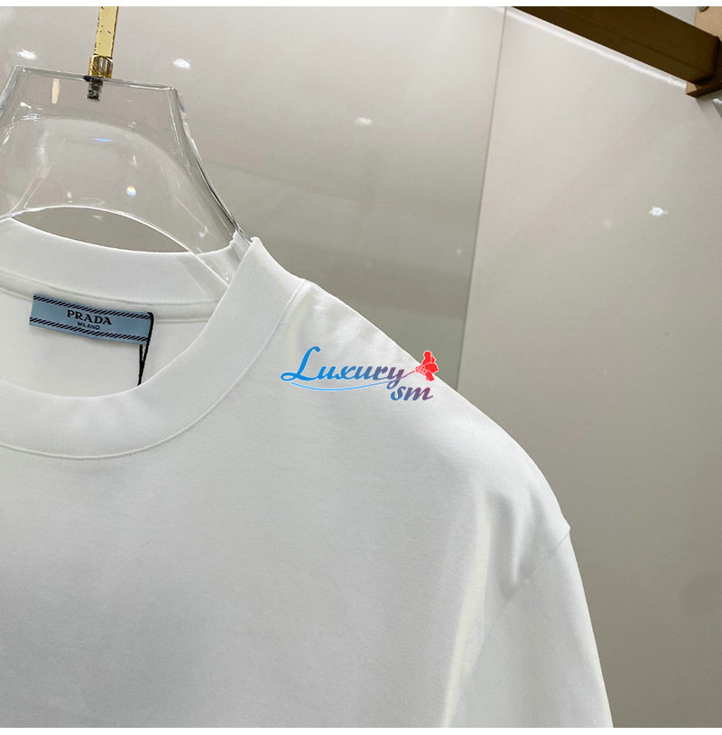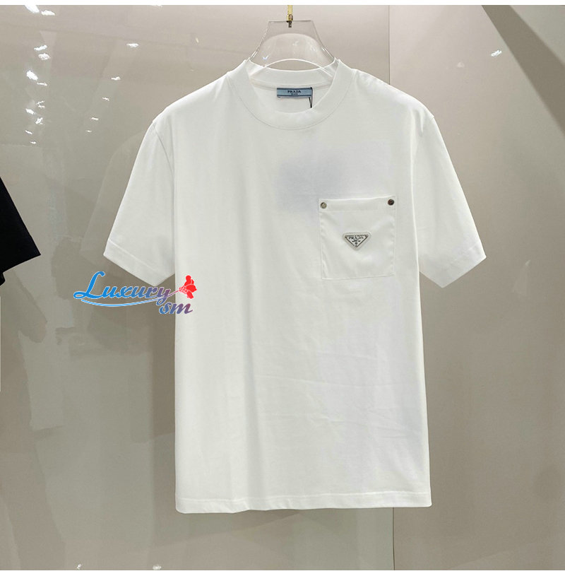 PRADA-03277 프라다 화이트 트라이앵글 로고 티셔츠 남여공용