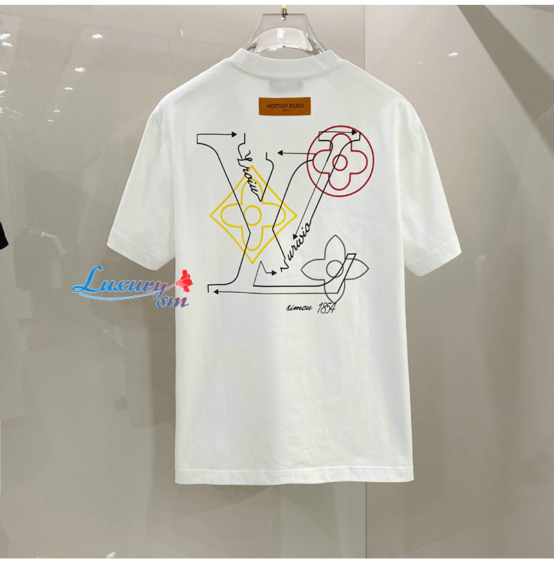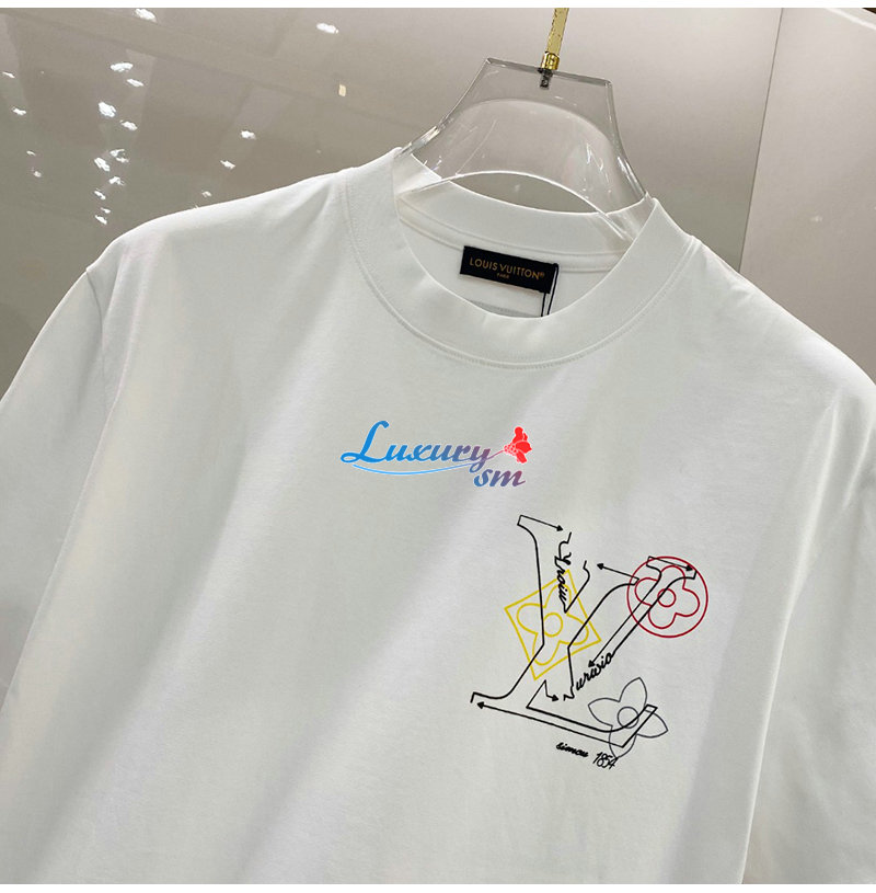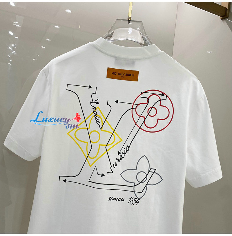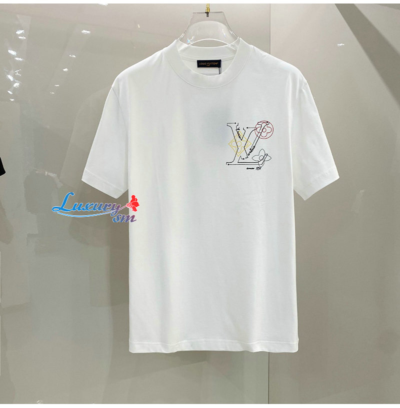 LOUIS VUITTON-032714 루이비통 화이트 LV 시그니처 프린트 장식 티셔츠 남여공용