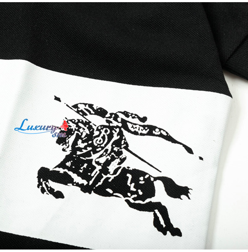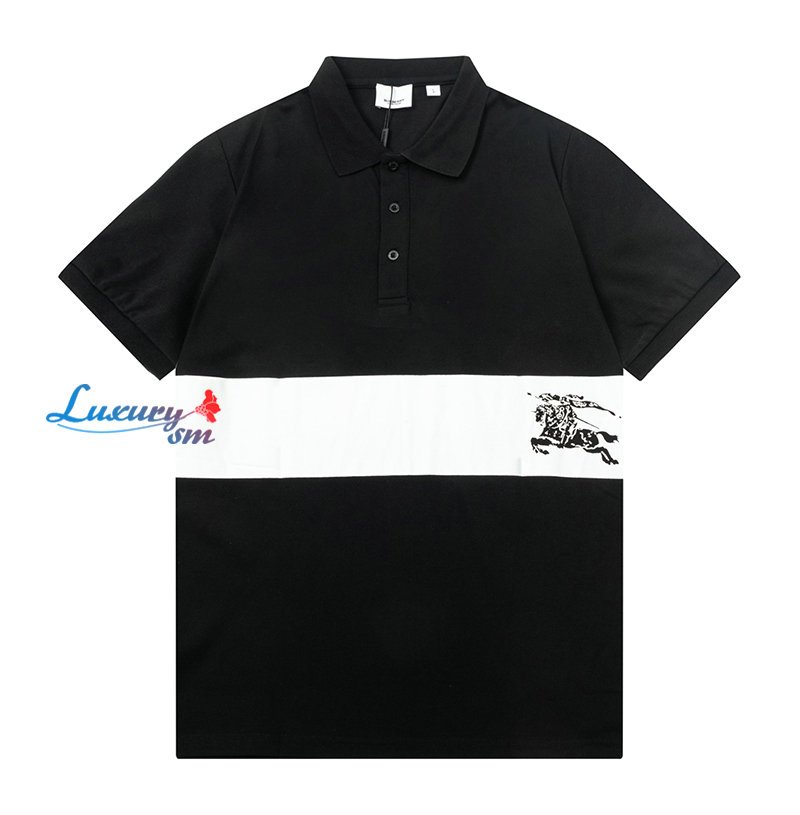 BURBERRY-04013 버버리 블랙/화이트 코튼 폴로 티셔츠 남성용