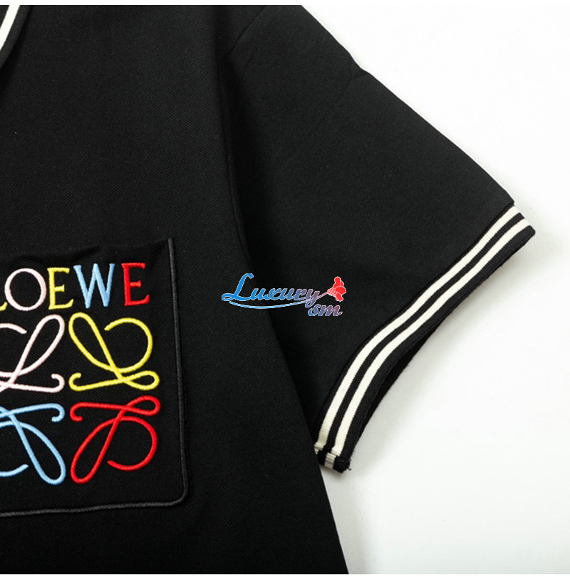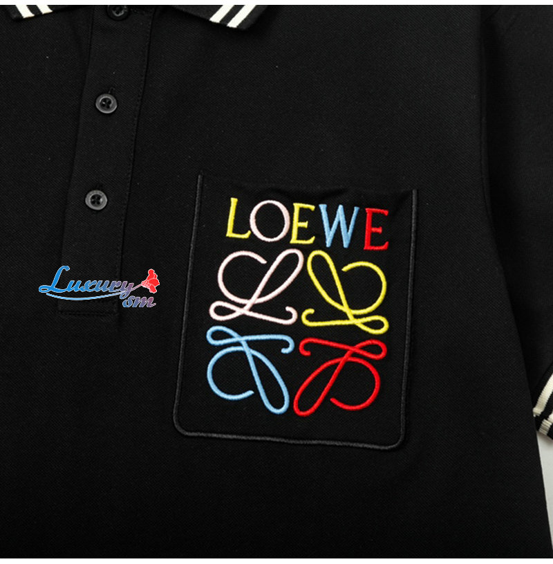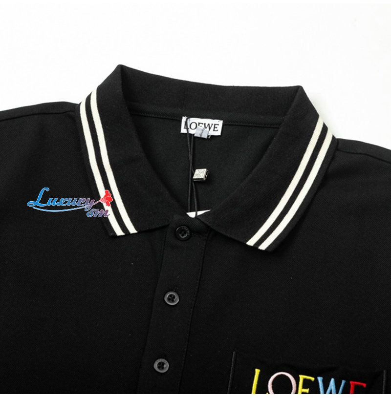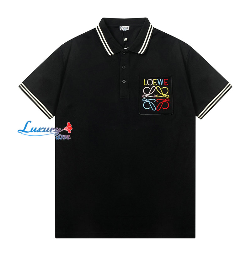 LOEWE-04015 로에베 블랙 로고 아플리케 장식 폴로 티셔츠 남성용