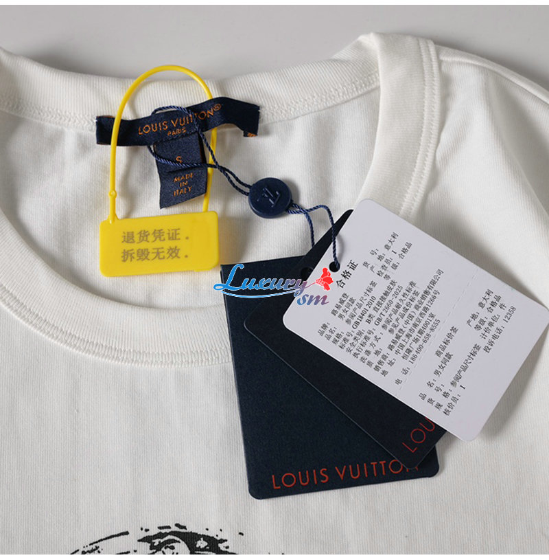LOUIS VUITTON-05064 루이비통 화이트 프린트 장식 티셔츠 남여공용