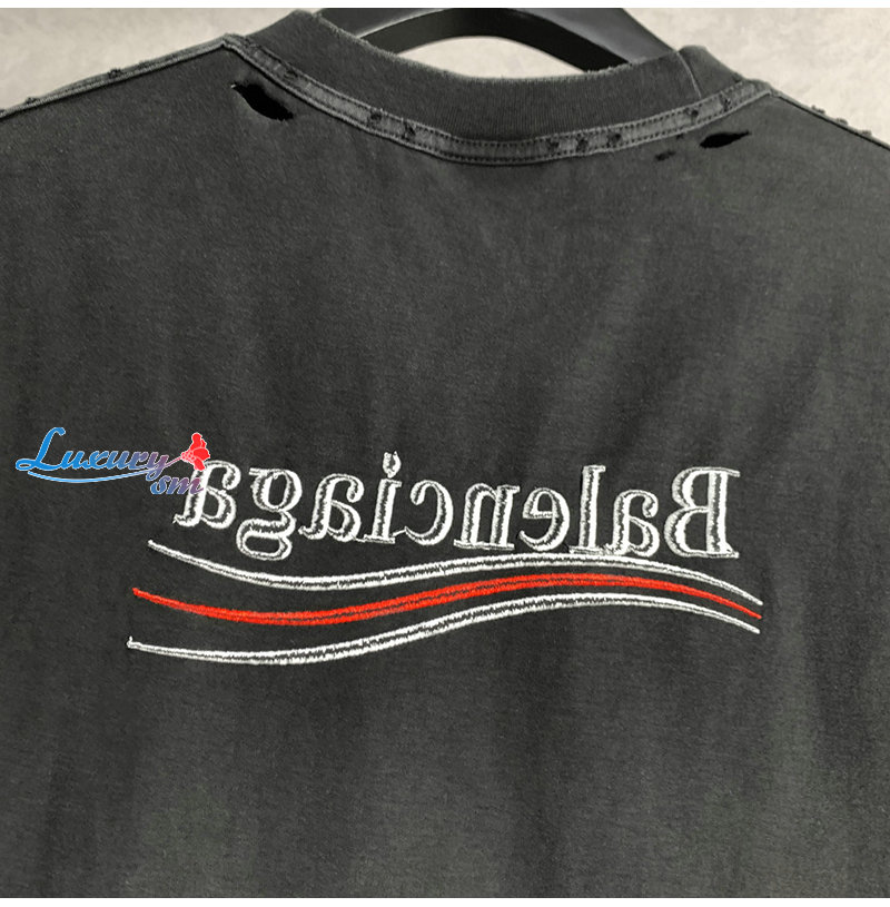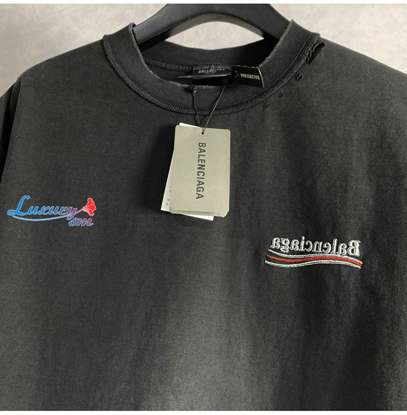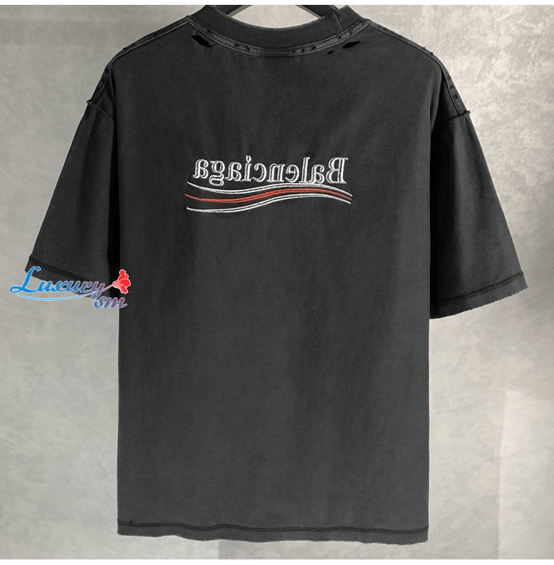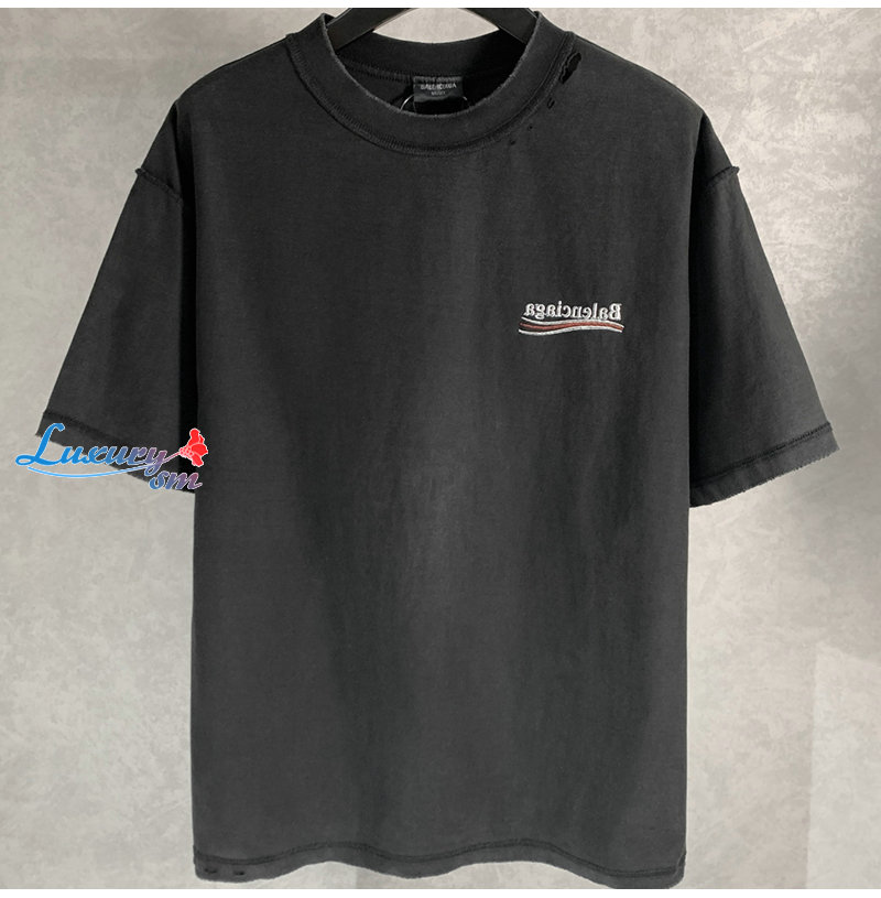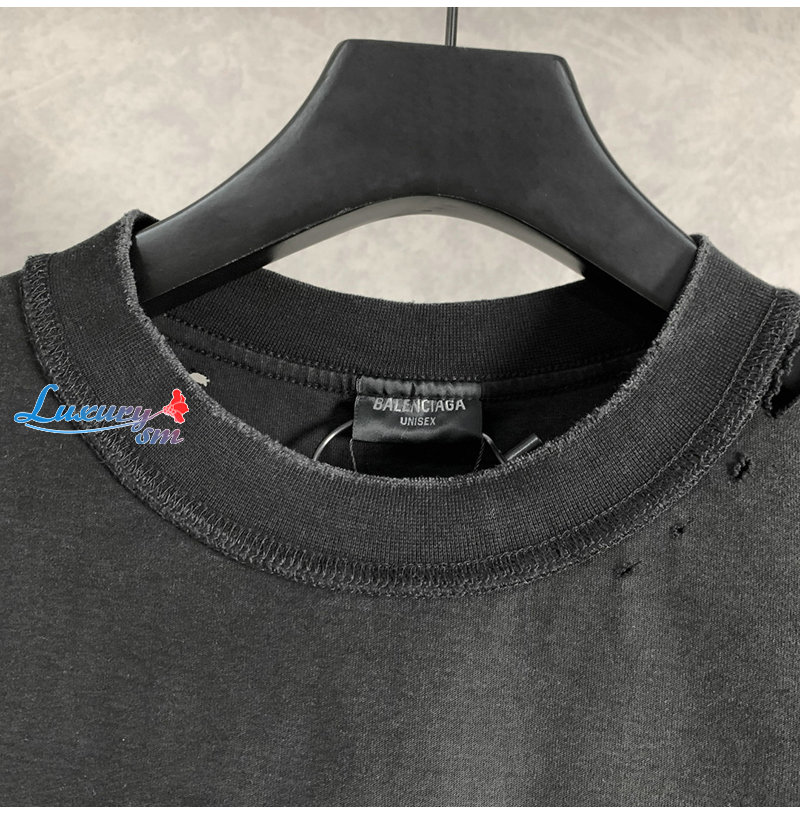 BALENCIAGA-05171 발렌시아가 블랙 워시드 코튼 빈티지 티셔츠 남여공용
