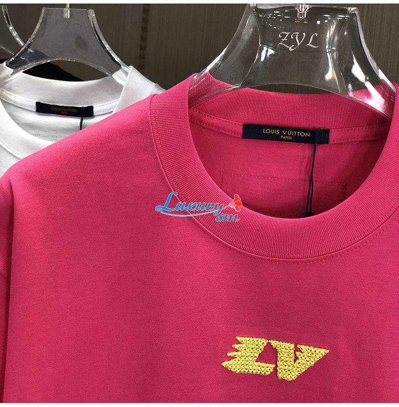 LOUIS VUITTON-05178 루이비통 핑크 아플리케 장식 티셔츠 남여공용