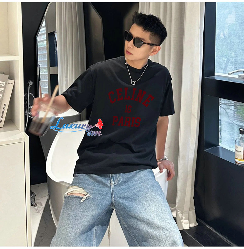 CELINE-06095 셀린느 블랙 프린트 장식 티셔츠 남여공용