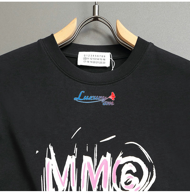 Maison Margiela-060910 메종 블랙 프린트 장식 티셔츠 남여공용